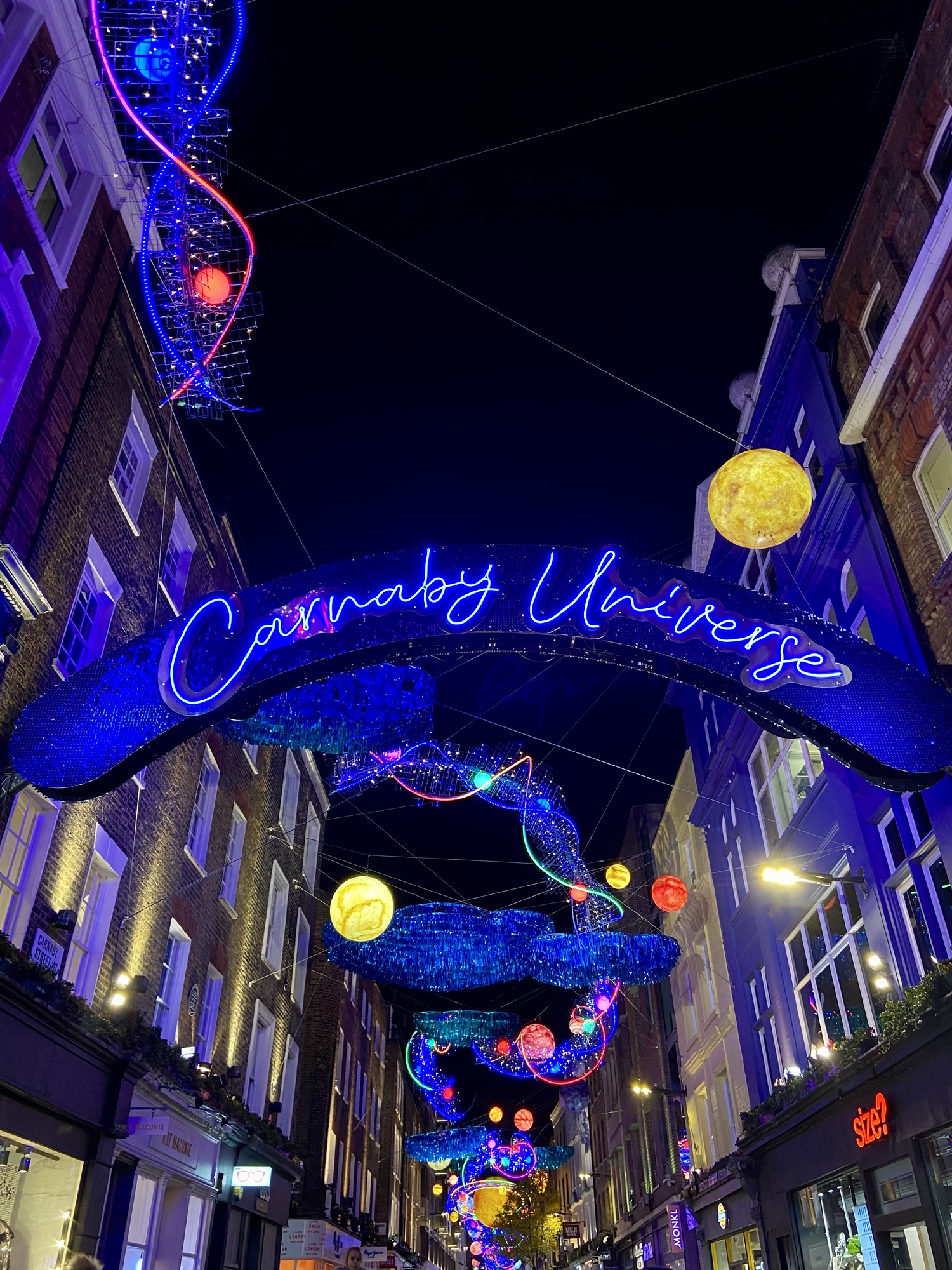 Ensuite, nous avons découvert Carnaby Street, une rue aux décorations souvent plus originales et intimistes. Le contraste avec l’effervescence de Piccadilly Circus était saisissant. Nous avons également fait un tour dans Chinatown, où l’ambiance et les lumières donnent l’impression de voyager dans un autre univers.